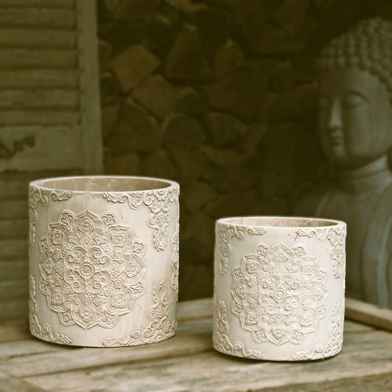 Mandala Übertopf Rund Creme Weiß Shabby