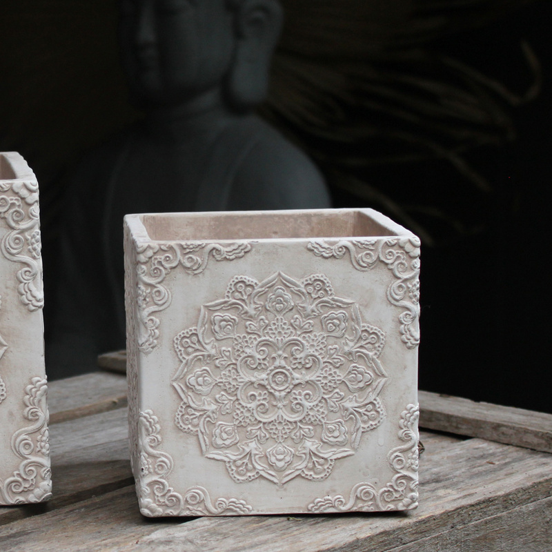 Ornament Übertopf eckig Creme - Weiß